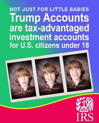 An eligible child under 18 can have a Trump Account established on his behalf, even if now he’s a baby only in your eyes. Take a look at: https://trumpaccounts.gov #IRS